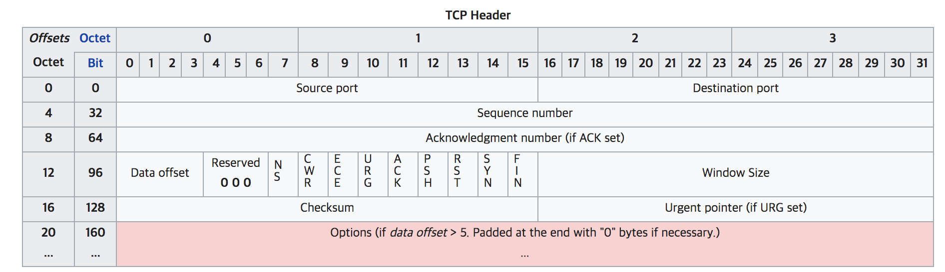TCP(Trnsmisson Control Protocol)인터넷 환경에서 기본으로 사용하는 연결형 서비스를 지원하는 전송 계층 프로토콜이다. 호스트 간 신뢰성 있는 데이터 전달과 흐름제어 및 혼잡 제어 등의 기능을 제공한다. 특징